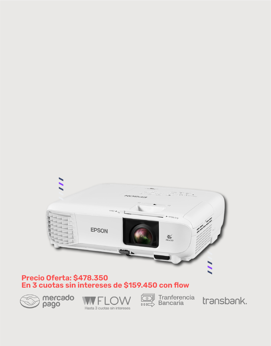 EpsonProyector LED Epson PowerLite E20 3LCD XGA 3400 Lumenes Contraste 15000:1 con Dial HDMI/USB/RJ45