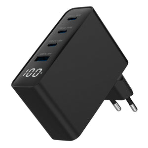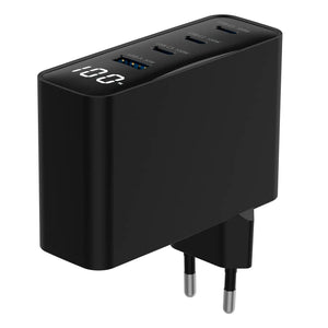 Capaz de alimentar notebooks, tablets y smartphones sin esfuerzo, cuenta con tres puertos USB-C y un puerto USB-A para cargar hasta cuatro dispositivos simultáneamente. Es la solución definitiva para reemplazar múltiples cargadores y mantener tu entorno siempre activo.