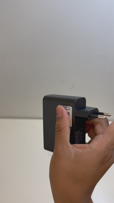 Integra una pantalla digital que muestra la potencia de carga en vivo, entregando información clara para un uso más seguro. Todo esto respaldado por protección avanzada contra sobretemperatura y cortocircuitos, en un diseño compacto ideal para mochilas o escritorios.