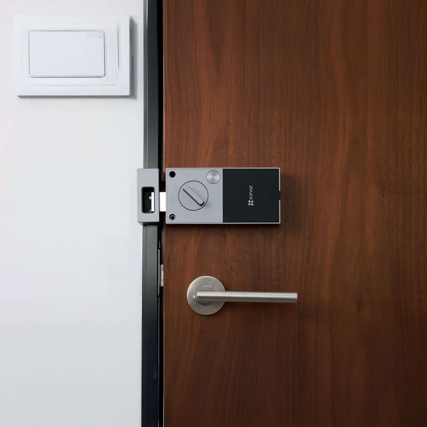 Reemplaza cerraduras estándar en minutos sin modificaciones mayores, compatible con puertas de 35-65mm. Integra con ecosistema EZVIZ para sincronizar con cámaras y timbres, usando Alexa o Google Assistant para comandos de voz.