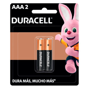 Pilas AAA LR03 x2 1.5V Alcalina Cilindrica Duracell Maxima Durabilidad y Potencia Dura Mas Mucho Mas